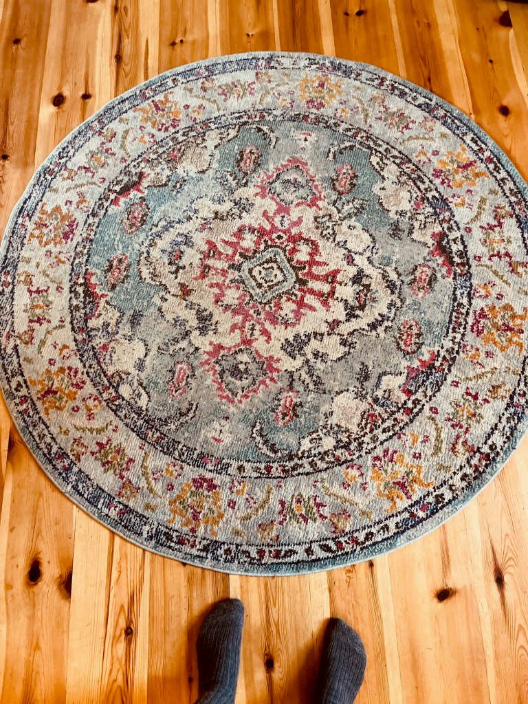 here i am driving (and taking a selfie) to pick up a 5 foot diameter rug that i purchased on fb marketplace. the rug will create the definitive space that will be the dance studio in my house, the new house i just moved into with my new partner and my two teens. i need to carve out this space for my dance practice. every home needs a place to dance.